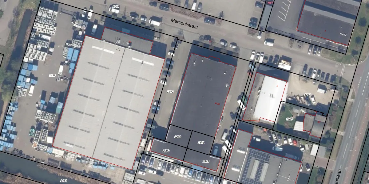 Het perceel waarop Marconistraat 22 staat heeft een oppervlakte van 2105 m². Dit is een zeer groot perceel. De perceeloppervlakte wordt geregistreerd door het Kadaster. Gedetailleerde informatie over de maten van dit perceel kunt u vinden in het rapport Kadastrale kaart met maatvoering van Marconistraat 22.