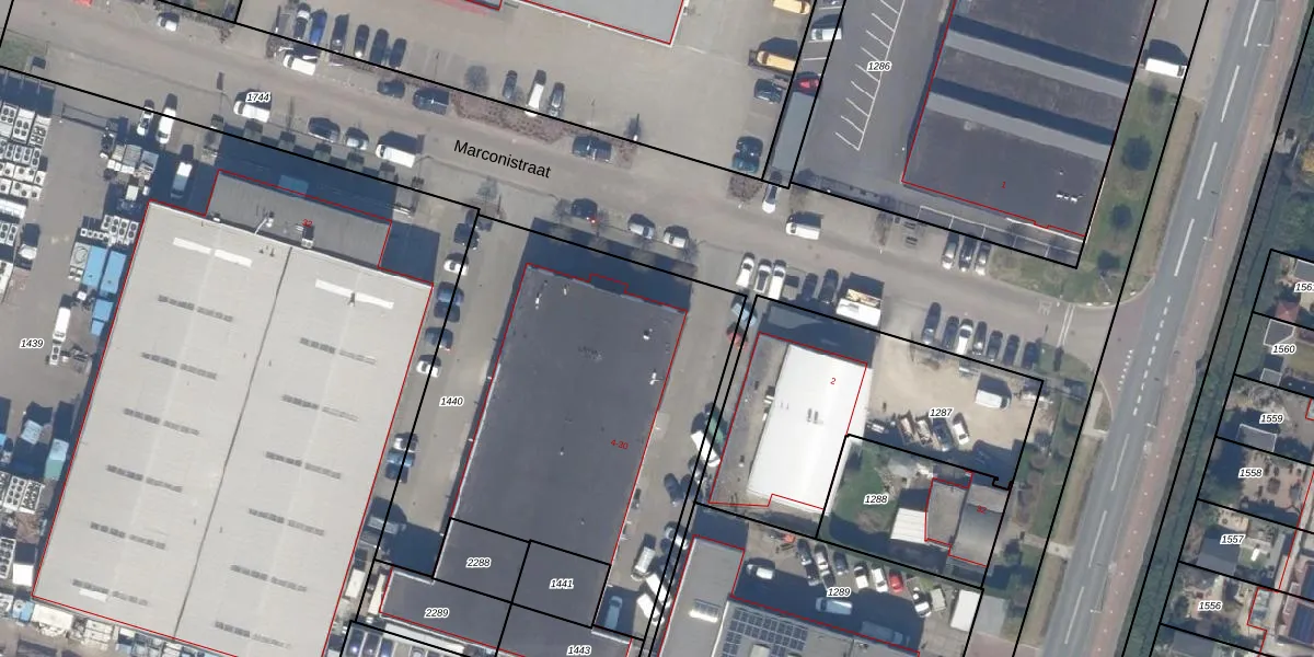 Het perceel waarop Marconistraat 4 staat heeft een oppervlakte van 2105 m². Dit is een zeer groot perceel. De perceeloppervlakte wordt geregistreerd door het Kadaster. Gedetailleerde informatie over de maten van dit perceel kunt u vinden in het rapport Kadastrale kaart met maatvoering van Marconistraat 4.