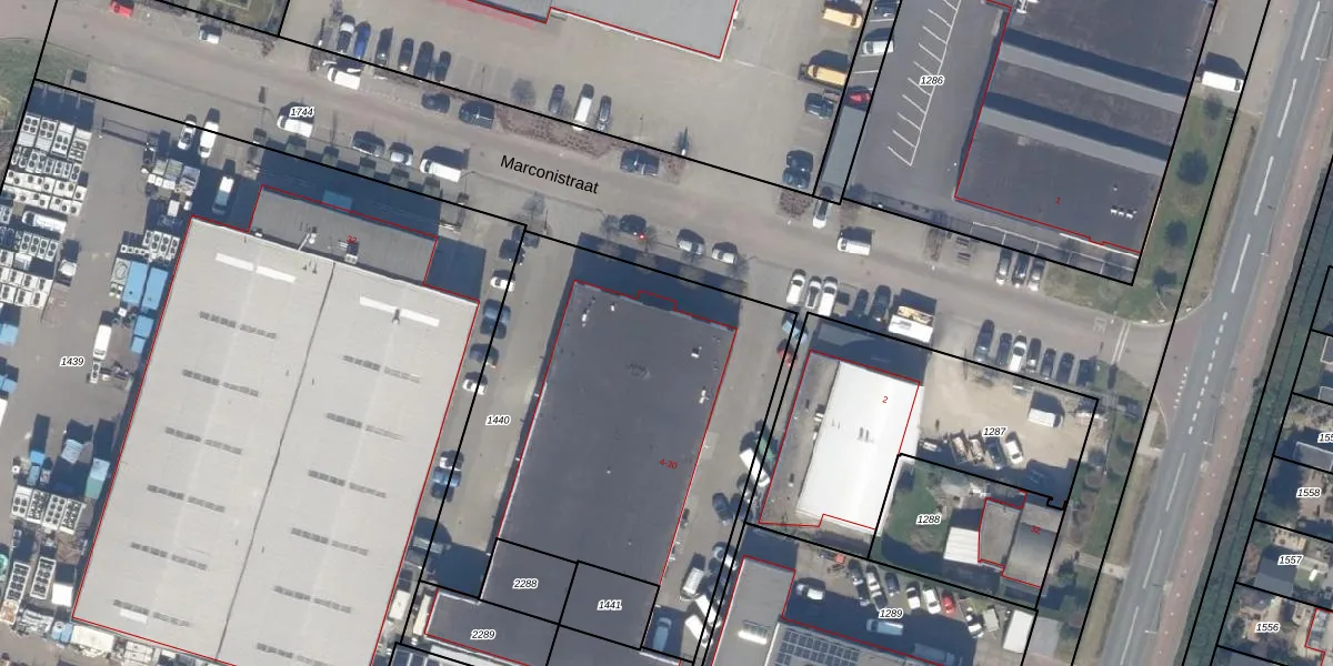 Het perceel waarop Marconistraat 6 staat heeft een oppervlakte van 2105 m². Dit is een zeer groot perceel. De perceeloppervlakte wordt geregistreerd door het Kadaster. Gedetailleerde informatie over de maten van dit perceel kunt u vinden in het rapport Kadastrale kaart met maatvoering van Marconistraat 6.