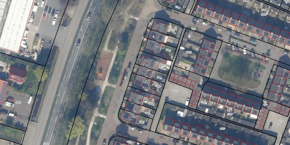 Gebruik de zoekbalk of klik op een perceel voor informatie over de adressen binnen dit perceel.