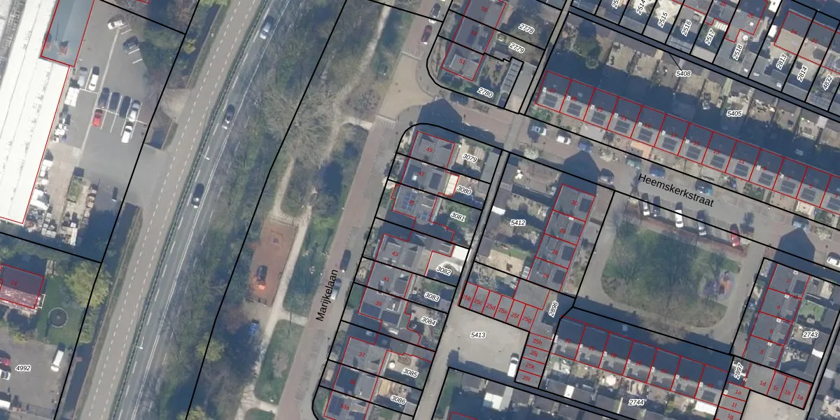 Het perceel waarop Marijkelaan 45 staat heeft een oppervlakte van 233 m². Dit is een middelgroot perceel. De perceeloppervlakte wordt geregistreerd door het Kadaster. Gedetailleerde informatie over de maten van dit perceel kunt u vinden in het rapport Kadastrale kaart met maatvoering van Marijkelaan 45.