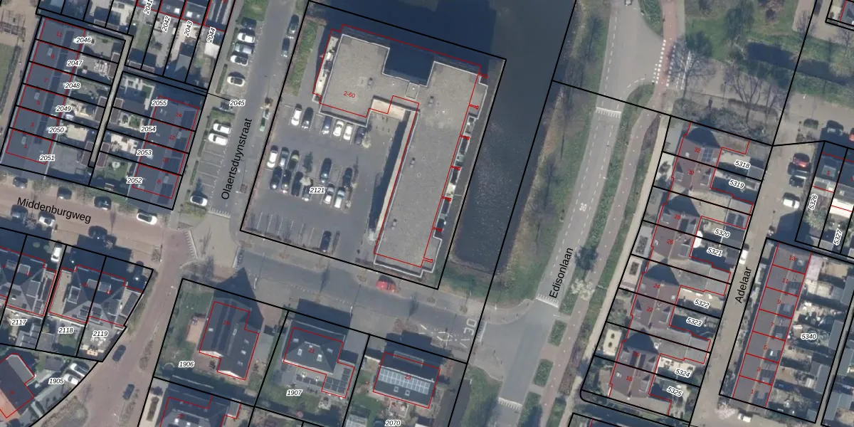 Het perceel waarop Middenburgweg 10 staat heeft een oppervlakte van 2695 m². Dit is een zeer groot perceel. De perceeloppervlakte wordt geregistreerd door het Kadaster. Gedetailleerde informatie over de maten van dit perceel kunt u vinden in het rapport Kadastrale kaart met maatvoering van Middenburgweg 10.