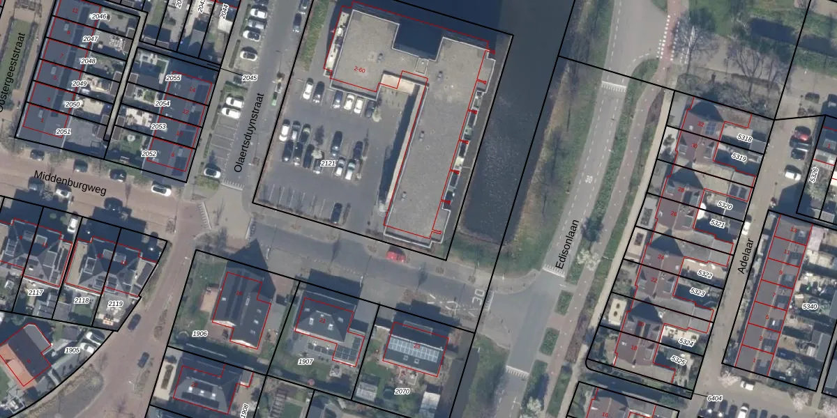 Het perceel waarop Middenburgweg 28 staat heeft een oppervlakte van 2695 m². Dit is een zeer groot perceel. De perceeloppervlakte wordt geregistreerd door het Kadaster. Gedetailleerde informatie over de maten van dit perceel kunt u vinden in het rapport Kadastrale kaart met maatvoering van Middenburgweg 28.