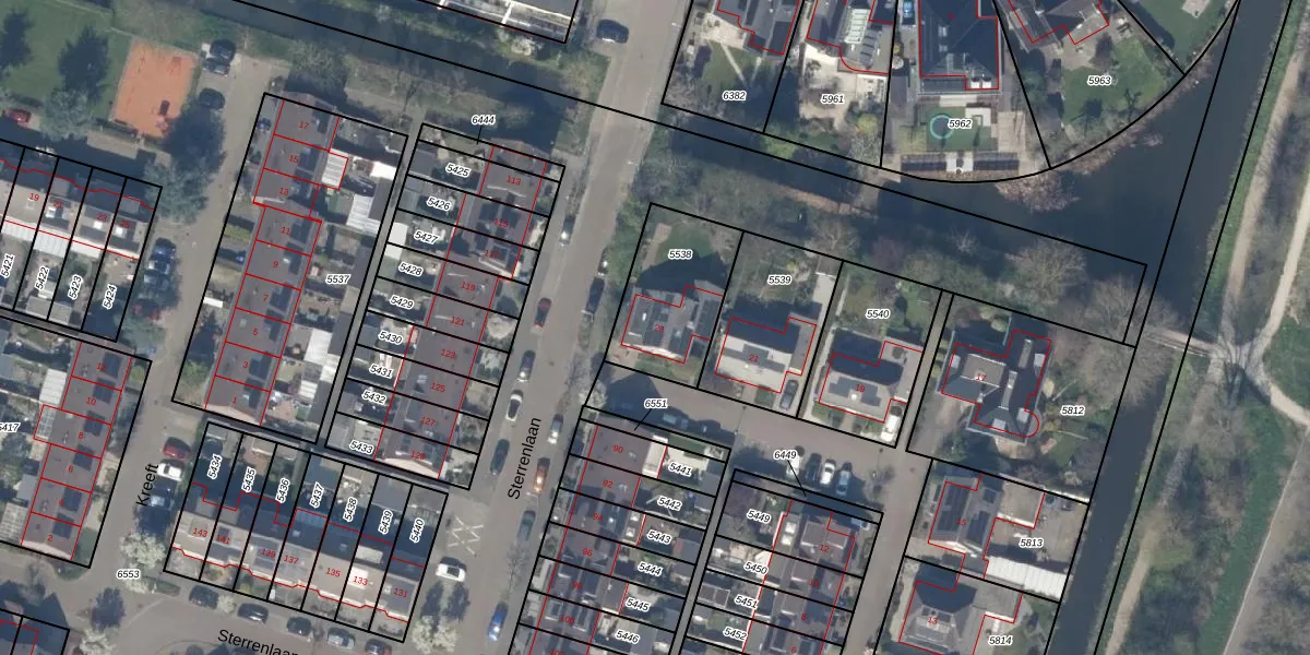 Het perceel waarop Noorderkroon 23 staat heeft een oppervlakte van 370 m². Dit is een groot perceel. De perceeloppervlakte wordt geregistreerd door het Kadaster. Gedetailleerde informatie over de maten van dit perceel kunt u vinden in het rapport Kadastrale kaart met maatvoering van Noorderkroon 23.