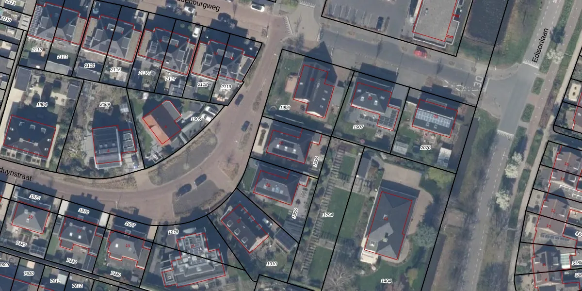 Gebruik de zoekbalk of klik op een perceel voor informatie over de adressen binnen dit perceel.
