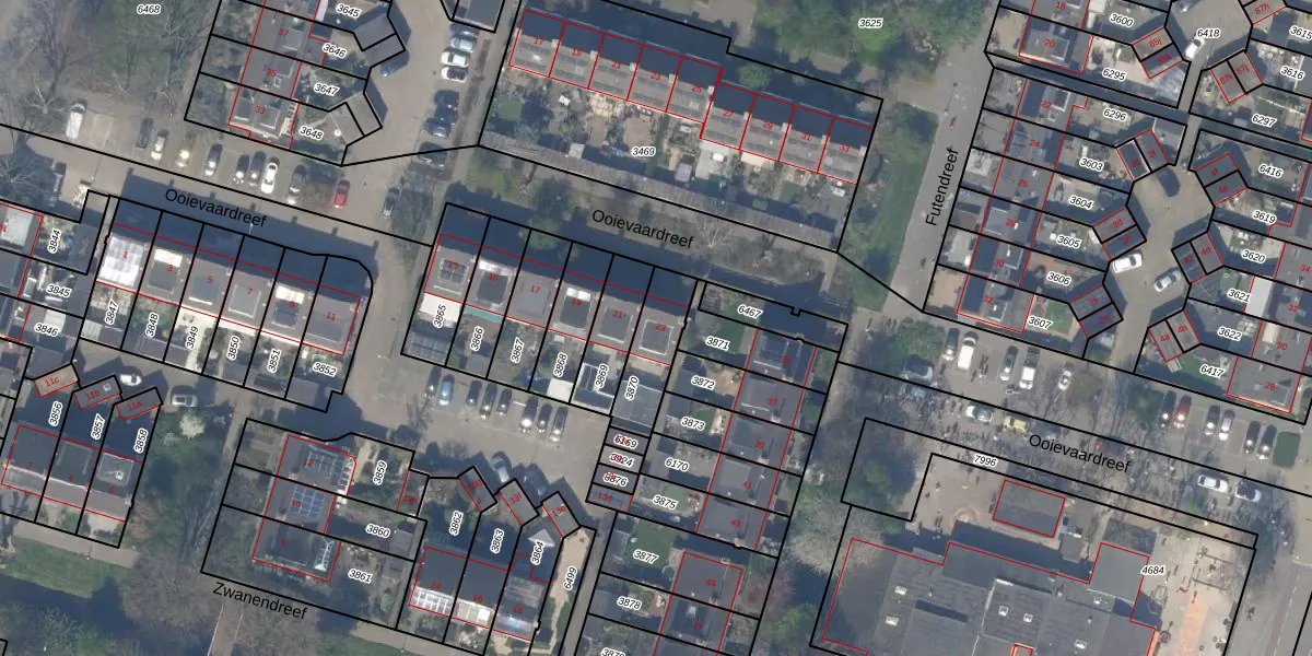 Gebruik de zoekbalk of klik op een perceel voor informatie over de adressen binnen dit perceel.