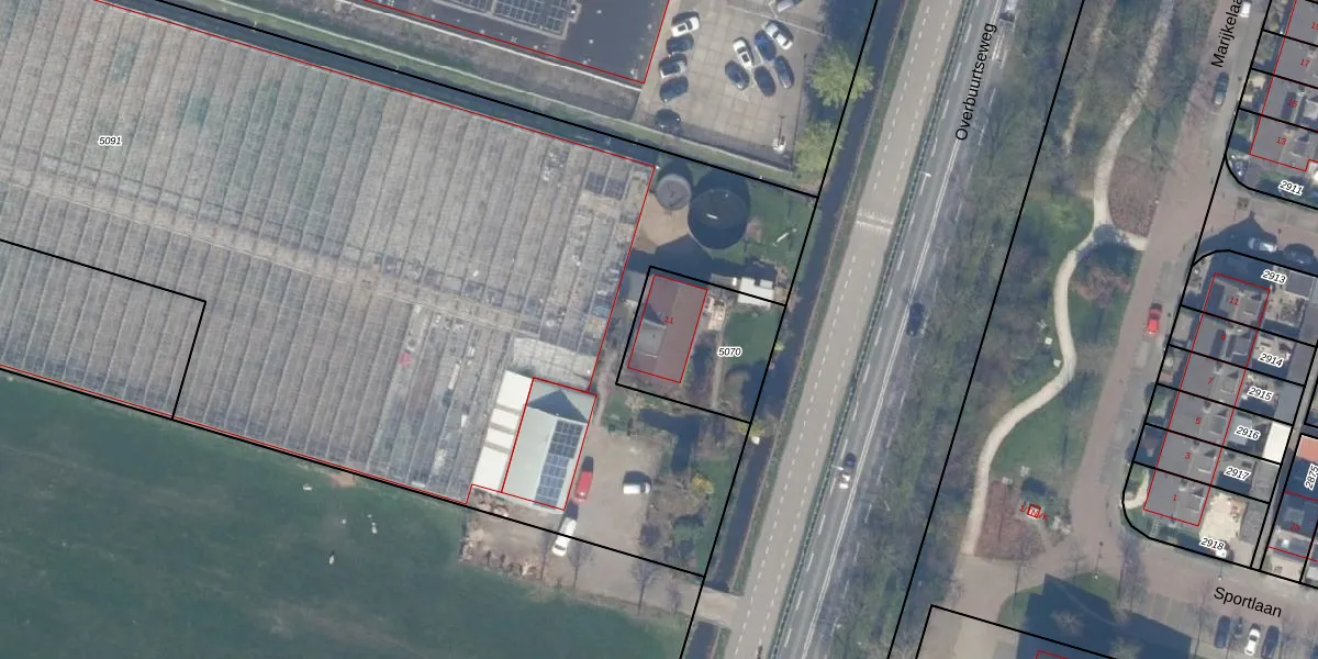 Overbuurtseweg 11 is gelegen op kadastraal perceel BWK02C5070. Deze kadastrale aanduiding is uniek en wordt gebruikt door het Kadaster om eigendomsrechten en andere zakelijke rechten vast te leggen. Het perceel maakt onderdeel uit van de kadastrale gemeente Bleiswijk.