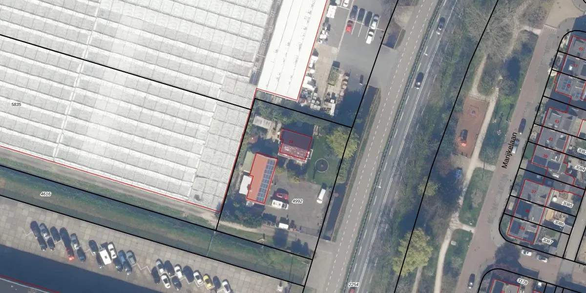 Het adres ligt op het perceel BWK02-C-4992, dat zich in de kadastrale gemeente Bleiswijk bevindt. Het perceel is kleiner dan gemiddeld in Bleiswijk. Het perceel is 1580 m² groot, terwijl het gemiddelde ligt op 3194,54 m². De grootste perceeloppervlakte in de kadastrale gemeente is 44,5 ha. De kleinste oppervlakte bedraagt 0 m². Op het perceel bevinden zich geen andere adressen. De huidige grenzen van het perceel zijn digitaal in de Basisregistratie Kadaster (BRK) geregistreerd op 11-11-1999.