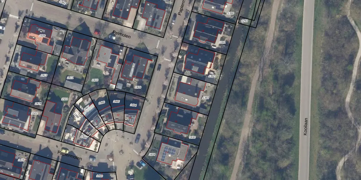 Het perceel waarop Papiermolen 21 staat heeft een oppervlakte van 447 m². Dit is een groot perceel. De perceeloppervlakte wordt geregistreerd door het Kadaster. Gedetailleerde informatie over de maten van dit perceel kunt u vinden in het rapport Kadastrale kaart met maatvoering van Papiermolen 21.