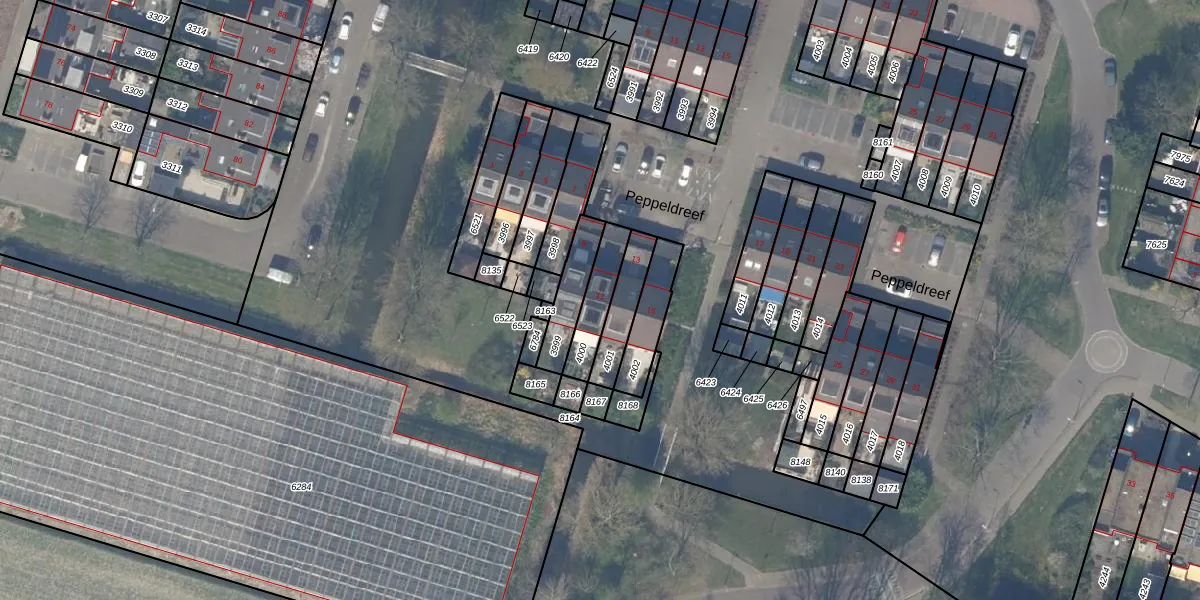 Gebruik de zoekbalk of klik op een perceel voor informatie over de adressen binnen dit perceel.