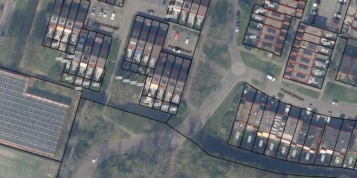 Gebruik de zoekbalk of klik op een perceel voor informatie over de adressen binnen dit perceel.