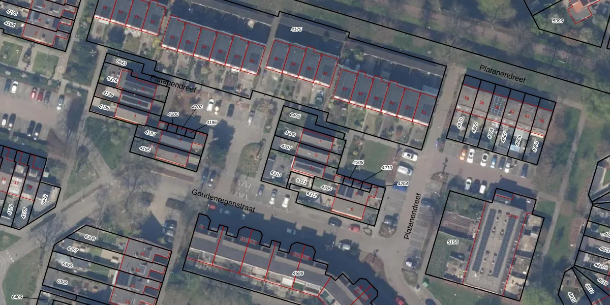 Gebruik de zoekbalk of klik op een perceel voor informatie over de adressen binnen dit perceel.