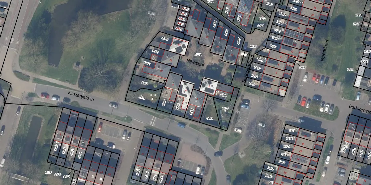 Het perceel waarop Ribeshof 6 staat heeft een oppervlakte van 142 m². Dit is een middelgroot perceel. De perceeloppervlakte wordt geregistreerd door het Kadaster. Gedetailleerde informatie over de maten van dit perceel kunt u vinden in het rapport Kadastrale kaart met maatvoering van Ribeshof 6.