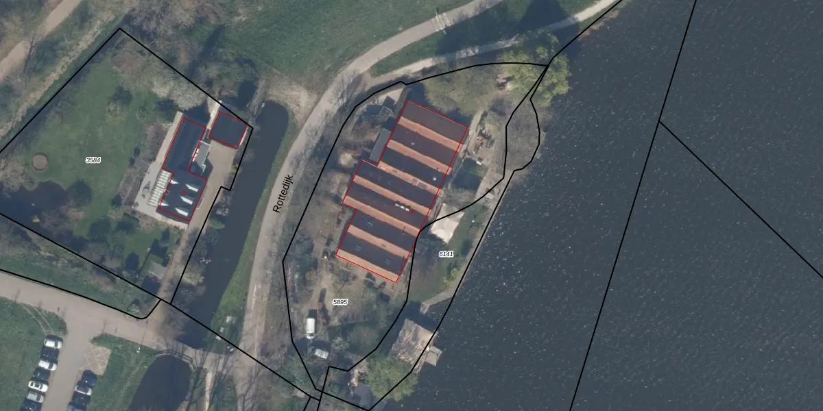 Het perceel waarop Rottedijk 11 staat heeft een oppervlakte van 2460 m². Dit is een zeer groot perceel. De perceeloppervlakte wordt geregistreerd door het Kadaster. Gedetailleerde informatie over de maten van dit perceel kunt u vinden in het rapport Kadastrale kaart met maatvoering van Rottedijk 11.