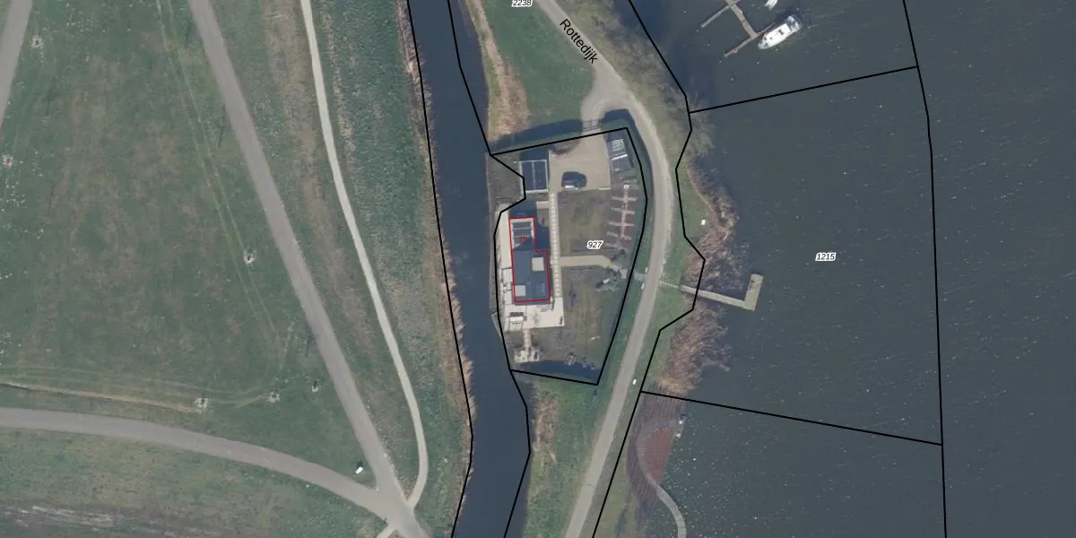 Het perceel waarop Rottedijk 15 staat heeft een oppervlakte van 1020 m². Dit is een zeer groot perceel. De perceeloppervlakte wordt geregistreerd door het Kadaster. Gedetailleerde informatie over de maten van dit perceel kunt u vinden in het rapport Kadastrale kaart met maatvoering van Rottedijk 15.