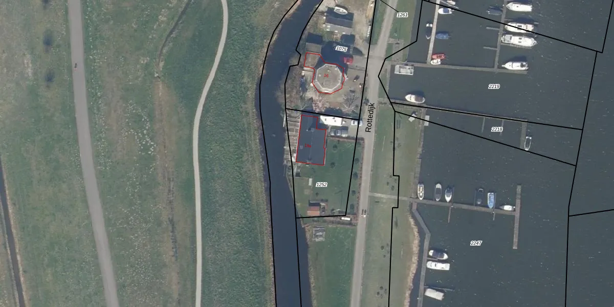 Het perceel waarop Rottedijk 16-a staat heeft een oppervlakte van 675 m². Dit is een groot perceel. De perceeloppervlakte wordt geregistreerd door het Kadaster. Gedetailleerde informatie over de maten van dit perceel kunt u vinden in het rapport Kadastrale kaart met maatvoering van Rottedijk 16-a.