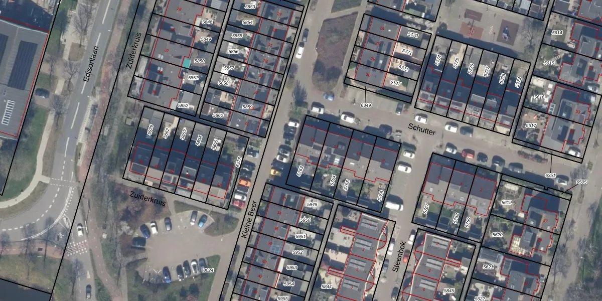 Gebruik de zoekbalk of klik op een perceel voor informatie over de adressen binnen dit perceel.