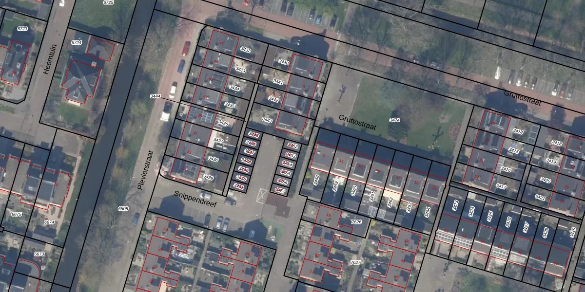 Gebruik de zoekbalk of klik op een perceel voor informatie over de adressen binnen dit perceel.