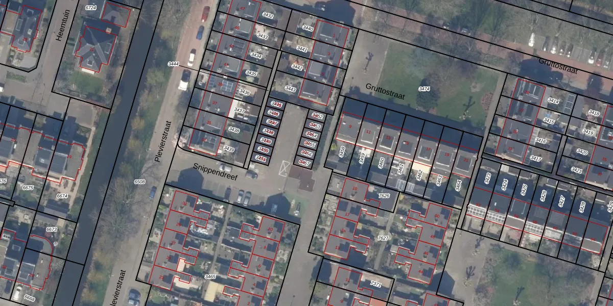 Gebruik de zoekbalk of klik op een perceel voor informatie over de adressen binnen dit perceel.