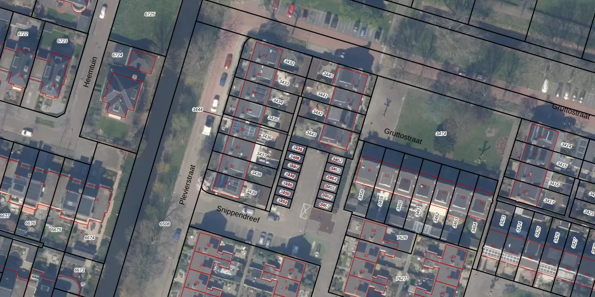 Gebruik de zoekbalk of klik op een perceel voor informatie over de adressen binnen dit perceel.