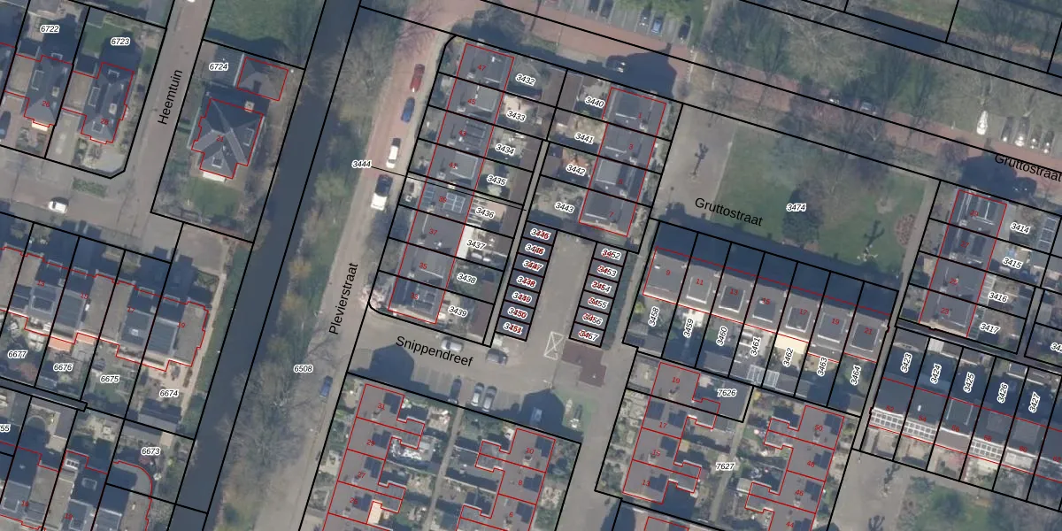 Gebruik de zoekbalk of klik op een perceel voor informatie over de adressen binnen dit perceel.
