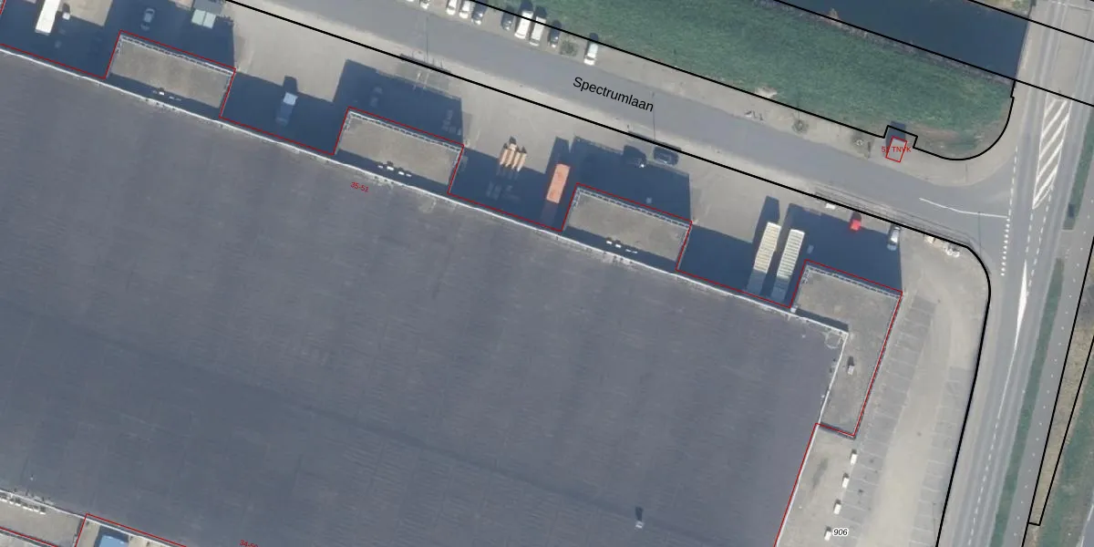 Het perceel waarop Spectrumlaan 47 staat heeft een oppervlakte van 2,6 ha. Dit is een zeer groot perceel. De perceeloppervlakte wordt geregistreerd door het Kadaster. Gedetailleerde informatie over de maten van dit perceel kunt u vinden in het rapport Kadastrale kaart met maatvoering van Spectrumlaan 47.