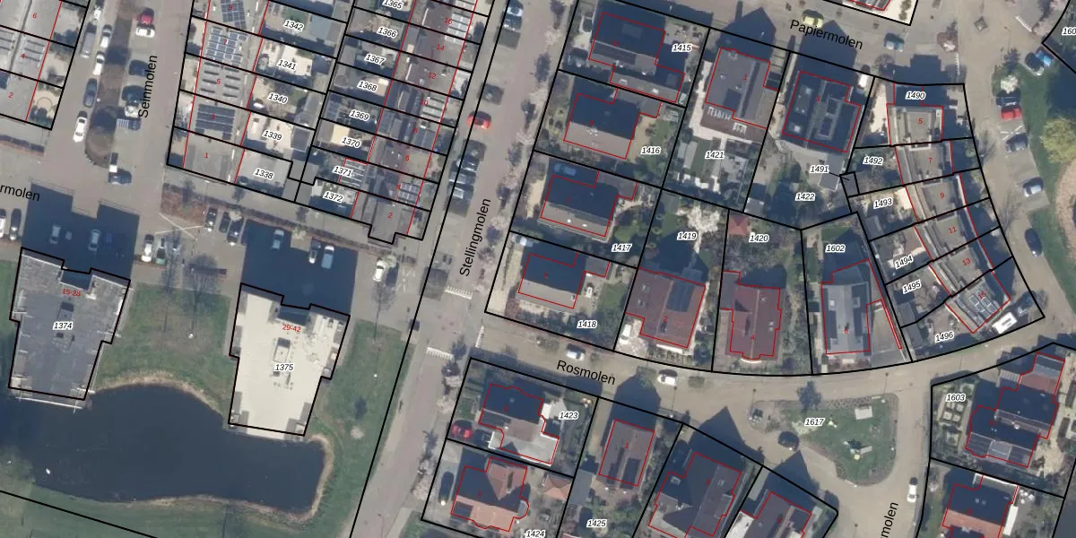Het perceel waarop Stellingmolen 5 staat heeft een oppervlakte van 395 m². Dit is een groot perceel. De perceeloppervlakte wordt geregistreerd door het Kadaster. Gedetailleerde informatie over de maten van dit perceel kunt u vinden in het rapport Kadastrale kaart met maatvoering van Stellingmolen 5.