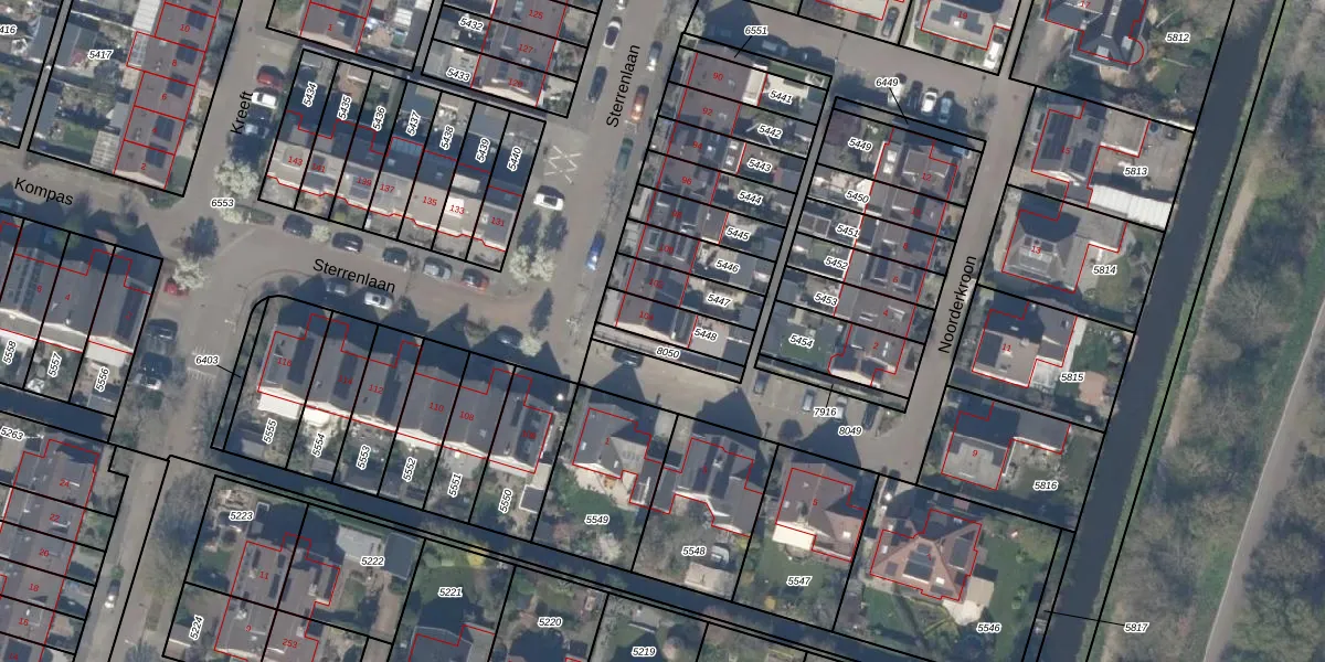 Sterrenlaan 104 is gelegen op kadastraal perceel BWK02C5448. Deze kadastrale aanduiding is uniek en wordt gebruikt door het Kadaster om eigendomsrechten en andere zakelijke rechten vast te leggen. Het perceel maakt onderdeel uit van de kadastrale gemeente Bleiswijk.