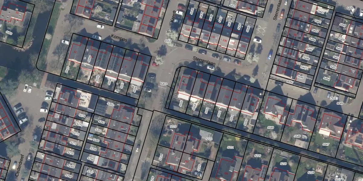Gebruik de zoekbalk of klik op een perceel voor informatie over de adressen binnen dit perceel.