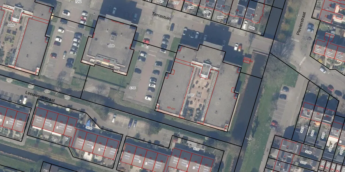 Het adres is gelegen op perceel 6697 in de sectie C en de kadastrale gemeente Bleiswijk. De kadastrale aanduiding is aldus BWK02-C-6697. Het perceel is kleiner dan gemiddeld in Bleiswijk. Het perceel is 1714 m² groot, terwijl het gemiddelde ligt op 3194,54 m². De grootste perceeloppervlakte in de kadastrale gemeente is 44,5 ha. De kleinste oppervlakte bedraagt 0 m². Er zijn 36 adressen aanwezig op het perceel. De huidige grenzen van het perceel zijn digitaal in de Basisregistratie Kadaster (BRK) geregistreerd op 05-01-2010.