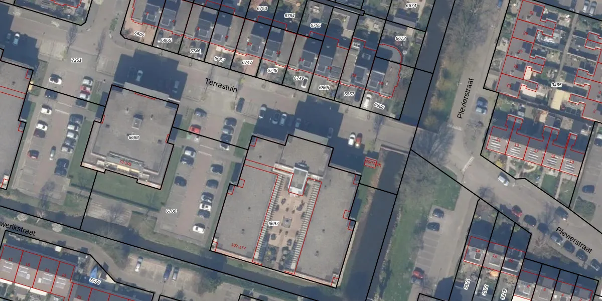 Het adres is gelegen op perceel 6697 in de sectie C en de kadastrale gemeente Bleiswijk. De kadastrale aanduiding is aldus BWK02-C-6697. Het perceel is kleiner dan gemiddeld in Bleiswijk. Het perceel is 1714 m² groot, terwijl het gemiddelde ligt op 3194,54 m². Het grootste perceel in de kadastrale gemeente is 44,5 ha. Het kleinste perceel heeft een oppervlakte van 0 m². Er zijn 36 adressen aanwezig op het perceel. De huidige grenzen van het perceel zijn digitaal in de Basisregistratie Kadaster (BRK) geregistreerd op 05-01-2010.