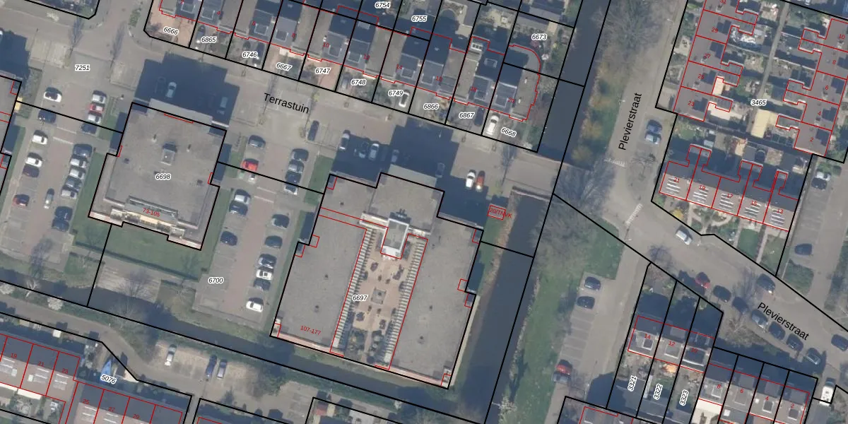 Het adres is gelegen op perceel 6697 in de sectie C en de kadastrale gemeente Bleiswijk. De kadastrale aanduiding is aldus BWK02-C-6697. Het perceel is kleiner dan gemiddeld in Bleiswijk. Het perceel is 1714 m² groot, terwijl het gemiddelde ligt op 3194,54 m². Het kleinste perceel in de kadastrale gemeente is 0 m² groot. De grootste perceeloppervlakte is 44,5 ha. Op het perceel liggen in totaal 36 adressen. De laatste wijziging in het de Basisregistratie Kadaster (BRK) was op 05-01-2010.