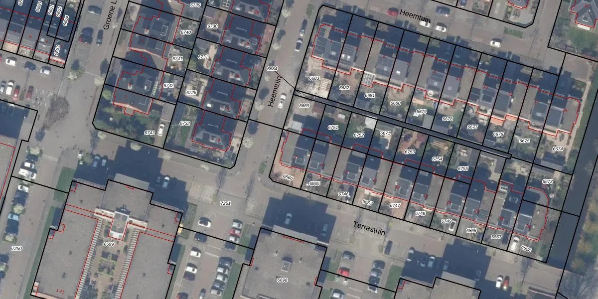 Het perceel waarop Terrastuin 2 staat heeft een oppervlakte van 199 m². Dit is een middelgroot perceel. De perceeloppervlakte wordt geregistreerd door het Kadaster. Gedetailleerde informatie over de maten van dit perceel kunt u vinden in het rapport Kadastrale kaart met maatvoering van Terrastuin 2.