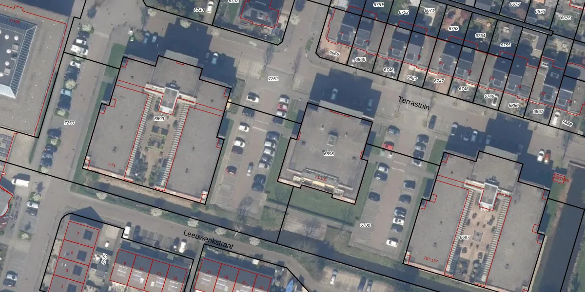 Het adres is gelegen op perceel 6698 in de sectie C en de kadastrale gemeente Bleiswijk. De kadastrale aanduiding is aldus BWK02-C-6698. De gemiddelde perceelgrootte in Bleiswijk is 3194,54 m². Dit perceel is kleiner: de perceeloppervlakte bedraagt 722 m². Het grootste perceel in de kadastrale gemeente is 44,5 ha. Het kleinste perceel heeft een oppervlakte van 0 m². Op het perceel zijn 17 adressen aanwezig. De laatste wijziging in het de Basisregistratie Kadaster (BRK) was op 05-01-2010.