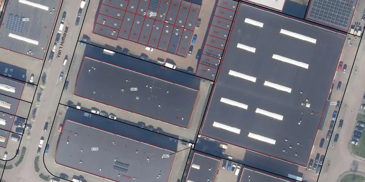 Het perceel waarop Van 't Hoffstraat 49 staat heeft een oppervlakte van 2810 m². Dit is een zeer groot perceel. De perceeloppervlakte wordt geregistreerd door het Kadaster. Gedetailleerde informatie over de maten van dit perceel kunt u vinden in het rapport Kadastrale kaart met maatvoering van Van 't Hoffstraat 49.