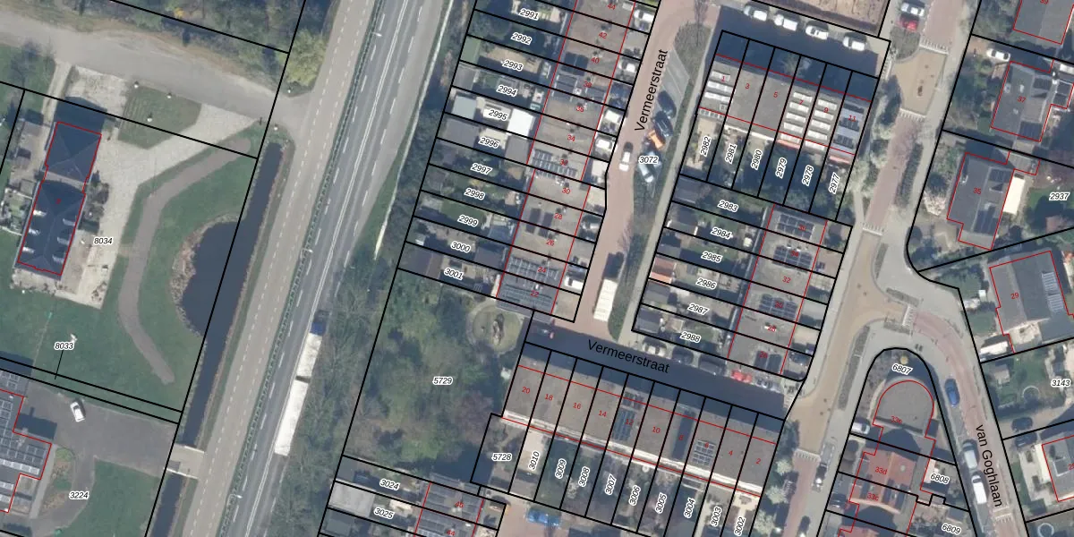 Gebruik de zoekbalk of klik op een perceel voor informatie over de adressen binnen dit perceel.