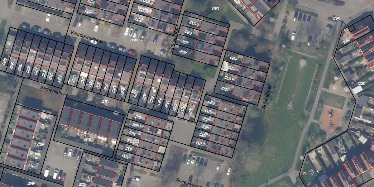 Gebruik de zoekbalk of klik op een perceel voor informatie over de adressen binnen dit perceel.