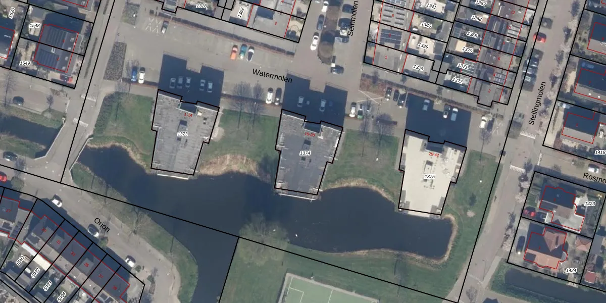 Het perceel waarop Watermolen 18 staat heeft een oppervlakte van 430 m². Dit is een groot perceel. De perceeloppervlakte wordt geregistreerd door het Kadaster. Gedetailleerde informatie over de maten van dit perceel kunt u vinden in het rapport Kadastrale kaart met maatvoering van Watermolen 18.