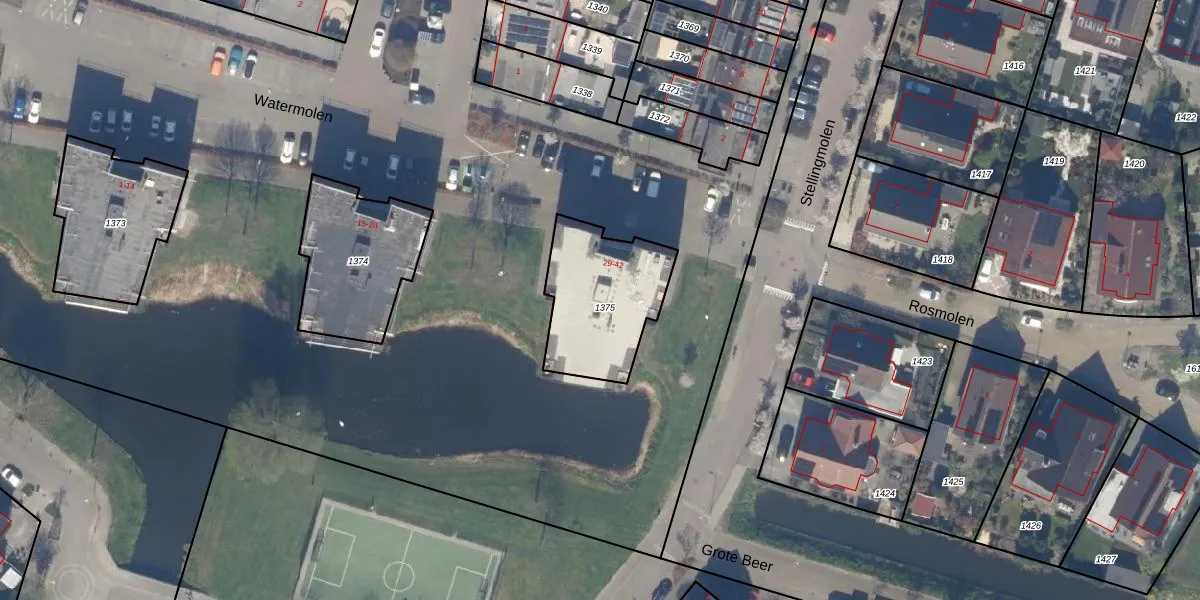 Het perceel waarop Watermolen 31 staat heeft een oppervlakte van 430 m². Dit is een groot perceel. De perceeloppervlakte wordt geregistreerd door het Kadaster. Gedetailleerde informatie over de maten van dit perceel kunt u vinden in het rapport Kadastrale kaart met maatvoering van Watermolen 31.