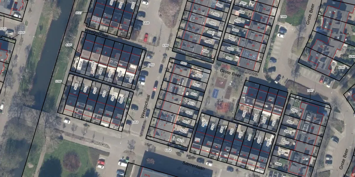 Gebruik de zoekbalk of klik op een perceel voor informatie over de adressen binnen dit perceel.