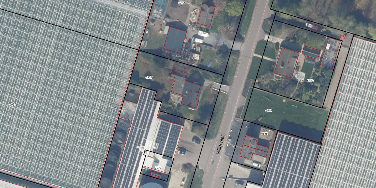 Wilgenlei 11 is gelegen op kadastraal perceel BWK02C6955. Deze kadastrale aanduiding is uniek en wordt gebruikt door het Kadaster om eigendomsrechten en andere zakelijke rechten vast te leggen. Het perceel maakt onderdeel uit van de kadastrale gemeente Bleiswijk.
