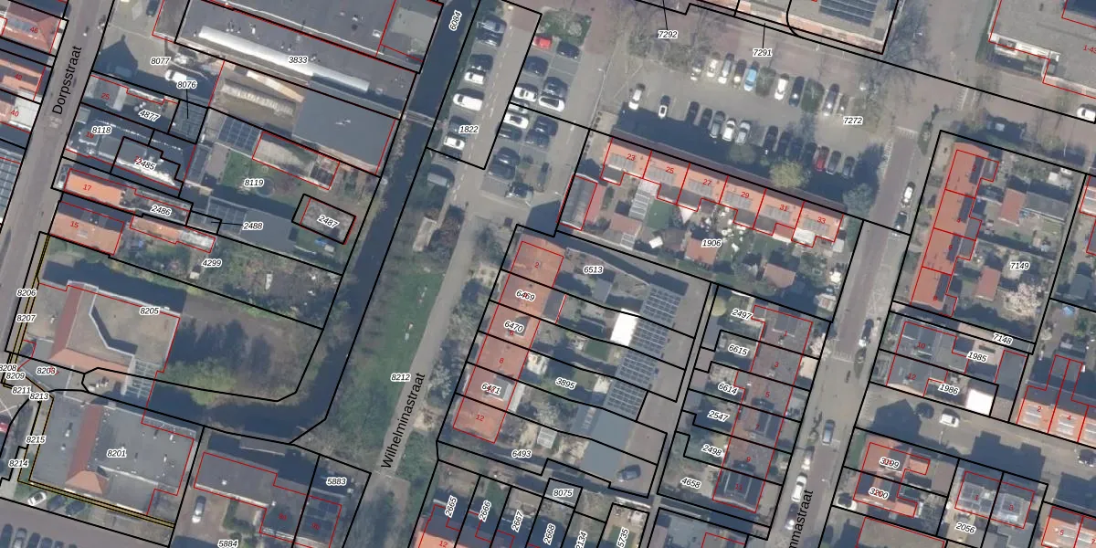 Gebruik de zoekbalk of klik op een perceel voor informatie over de adressen binnen dit perceel.