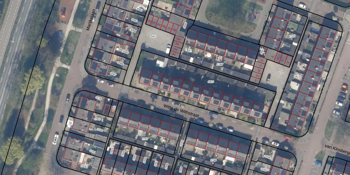 Het perceel waarop Witte de Withstraat 17 staat heeft een oppervlakte van 1732 m². Dit is een zeer groot perceel. De perceeloppervlakte wordt geregistreerd door het Kadaster. Gedetailleerde informatie over de maten van dit perceel kunt u vinden in het rapport Kadastrale kaart met maatvoering van Witte de Withstraat 17.