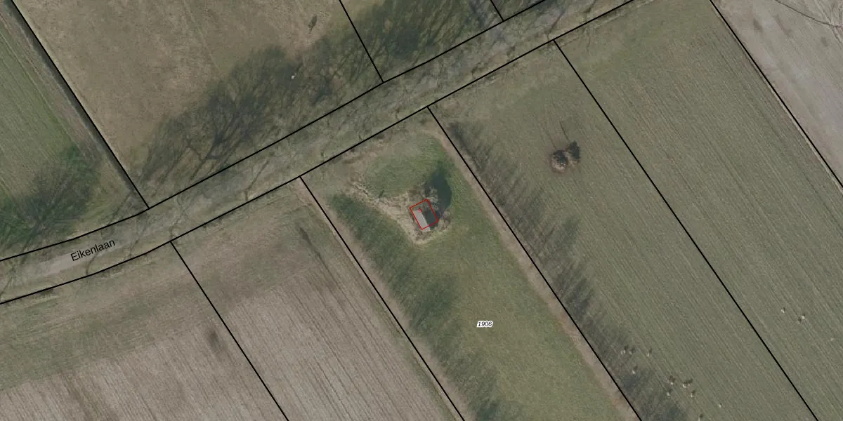 Het perceel waarop Eikenlaan 9 staat heeft een oppervlakte van 3525 m². Dit is een zeer groot perceel. De perceeloppervlakte wordt geregistreerd door het Kadaster. Gedetailleerde informatie over de maten van dit perceel kunt u vinden in het rapport Kadastrale kaart met maatvoering van Eikenlaan 9.