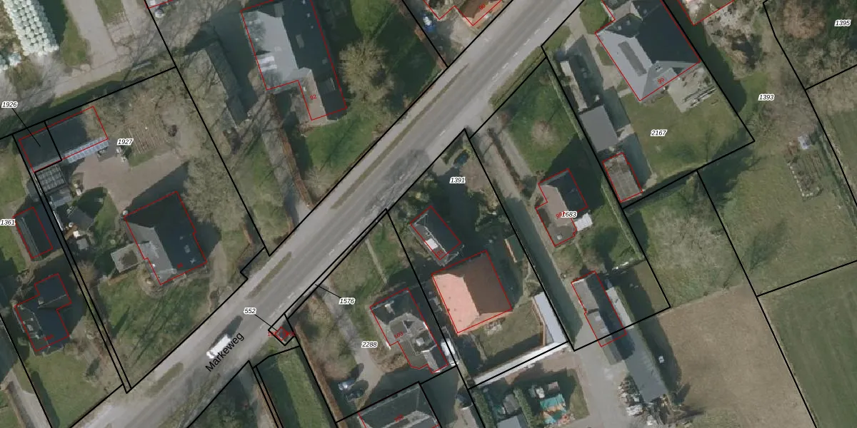 Het perceel waarop Markeweg 101 staat heeft een oppervlakte van 1260 m². Dit is een zeer groot perceel. De perceeloppervlakte wordt geregistreerd door het Kadaster. Gedetailleerde informatie over de maten van dit perceel kunt u vinden in het rapport Kadastrale kaart met maatvoering van Markeweg 101.
