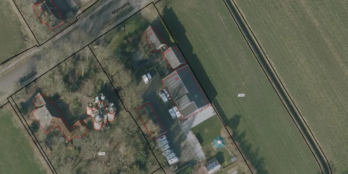 Het perceel waarop Markeweg 35-A staat heeft een oppervlakte van 1,2 ha. Dit is een zeer groot perceel. De perceeloppervlakte wordt geregistreerd door het Kadaster. Gedetailleerde informatie over de maten van dit perceel kunt u vinden in het rapport Kadastrale kaart met maatvoering van Markeweg 35-A.