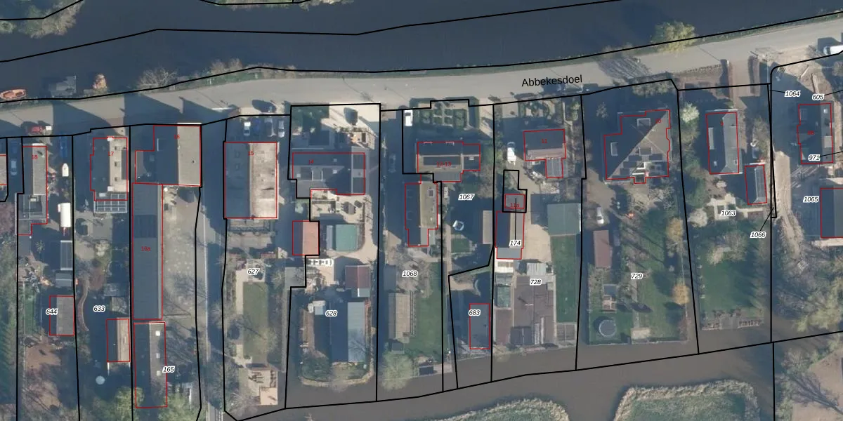 Het perceel waarop Abbekesdoel 13 staat heeft een oppervlakte van 875 m². Dit is een groot perceel. De perceeloppervlakte wordt geregistreerd door het Kadaster. Gedetailleerde informatie over de maten van dit perceel kunt u vinden in het rapport Kadastrale kaart met maatvoering van Abbekesdoel 13.