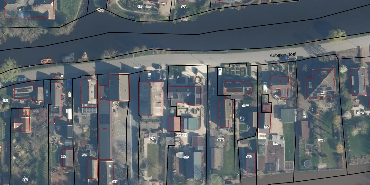 Abbekesdoel 14 is gelegen op kadastraal perceel BKG00E628. Deze kadastrale aanduiding is uniek en wordt gebruikt door het Kadaster om eigendomsrechten en andere zakelijke rechten vast te leggen. Het perceel maakt onderdeel uit van de kadastrale gemeente Bleskensgraaf.