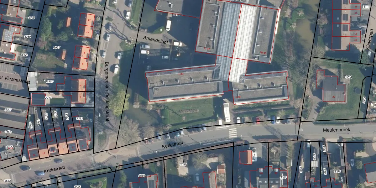 Het perceel waarop Amandelhof 33 staat heeft een oppervlakte van 1,5 ha. Dit is een zeer groot perceel. De perceeloppervlakte wordt geregistreerd door het Kadaster. Gedetailleerde informatie over de maten van dit perceel kunt u vinden in het rapport Kadastrale kaart met maatvoering van Amandelhof 33.