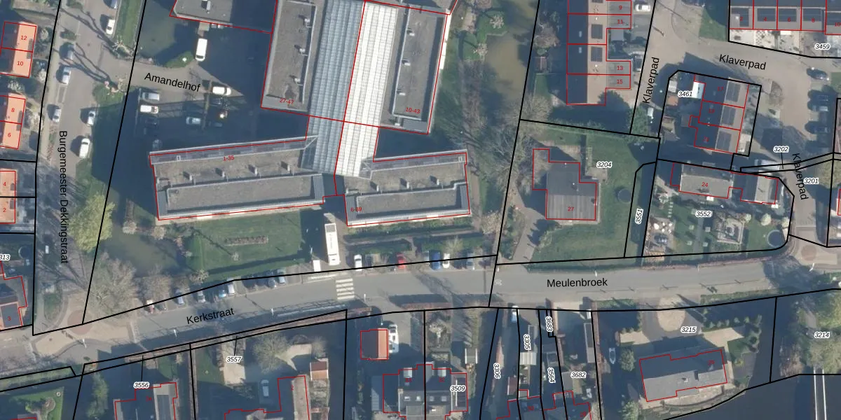 Het perceel waarop Amandelhof 38 staat heeft een oppervlakte van 1,5 ha. Dit is een zeer groot perceel. De perceeloppervlakte wordt geregistreerd door het Kadaster. Gedetailleerde informatie over de maten van dit perceel kunt u vinden in het rapport Kadastrale kaart met maatvoering van Amandelhof 38.